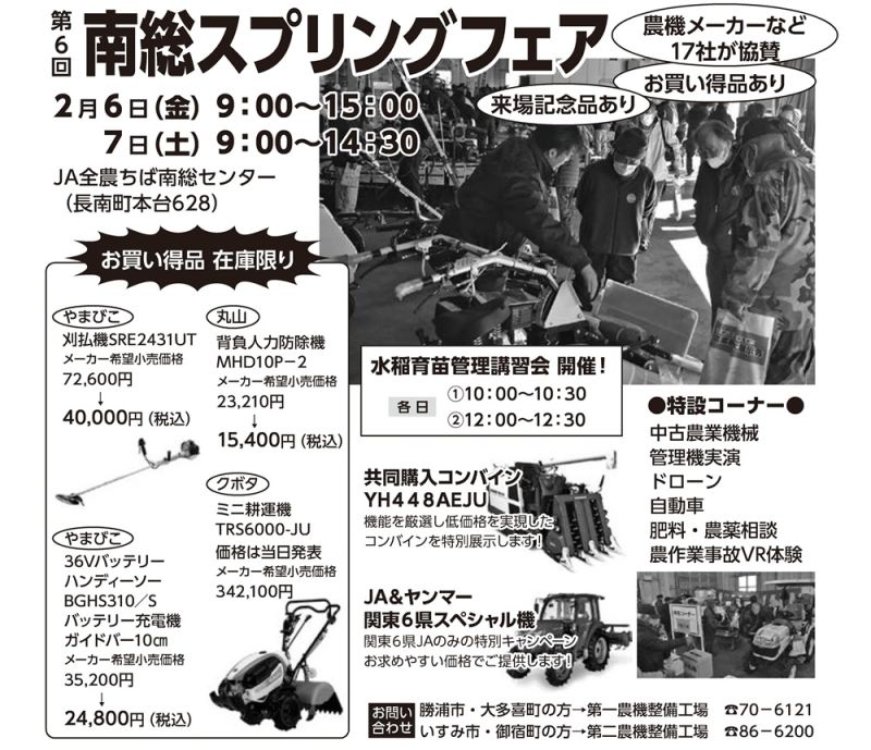 農機メーカーなど17社が協賛! 農繁期前の買い替えチャンスです